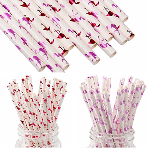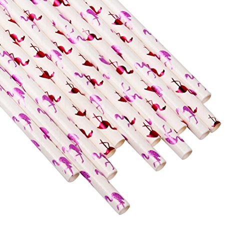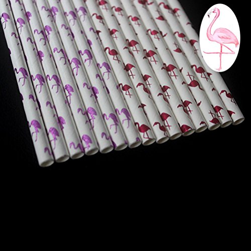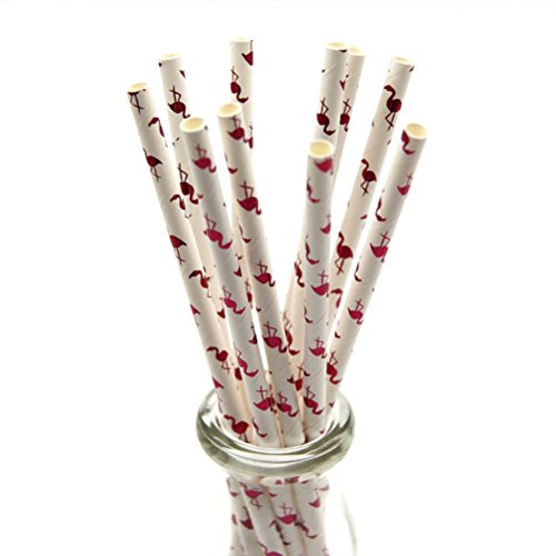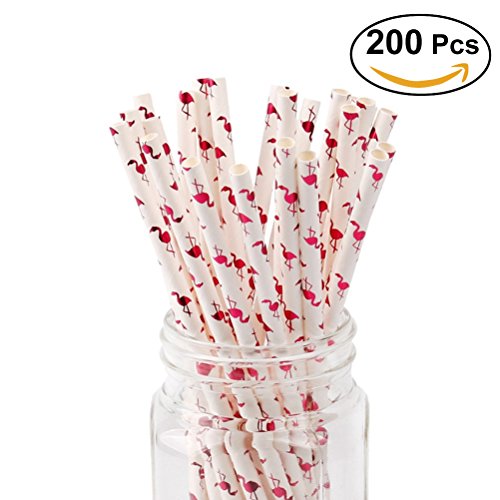 OUNONA Paper Straws Flamingo Patterned Home Club Drinking Straws for Party Decorations 200 Counts (Wine Red)