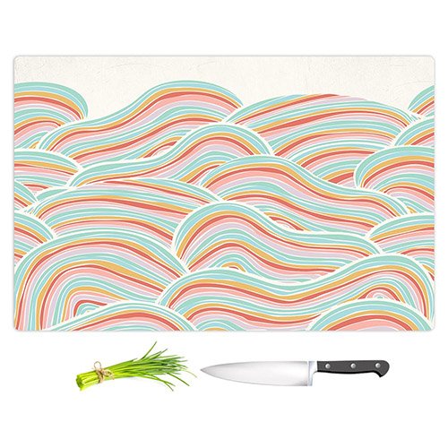 DiaNoche Designs CB-PomGraphicSummerSeawaves2 Pom Graphic Design-Summer Seawaves Unique Kitchen Slicing Dicing Bar Artistic Decorative Cutting Boards from, Large 15" x 11"