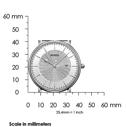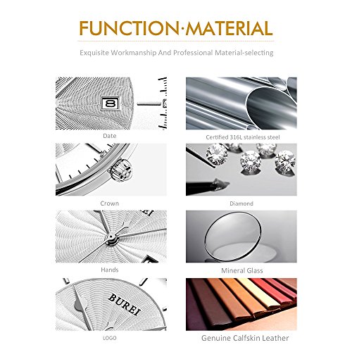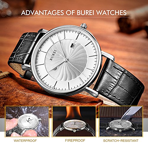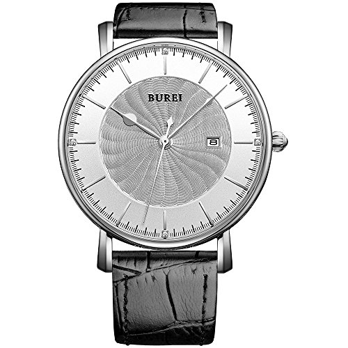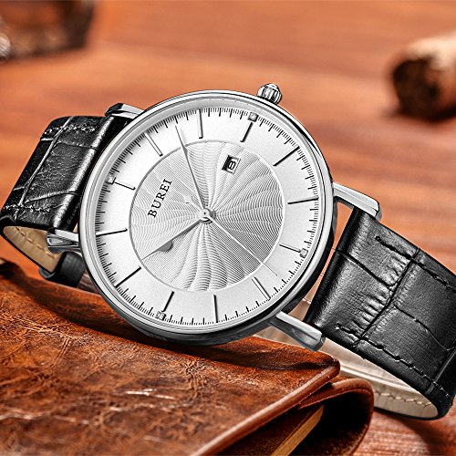 BUREI Men's Fashion Wrist Watches Ultra-thin Analog Quartz Datejust Dial with Leather Strap