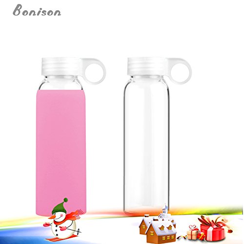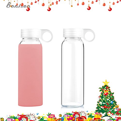 BONISON Novelty Durable Glass Water Bottle with Colorful Soft Silicone Sleeve (14 Ounce, Peach)