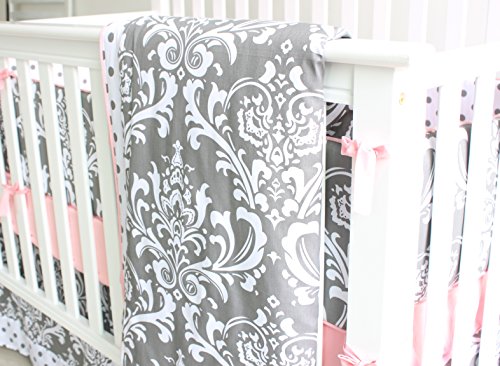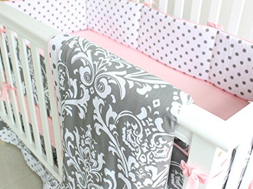 7 Pieces Set Grey Floral Baby Crib Nursery Bedding Set With Bumper