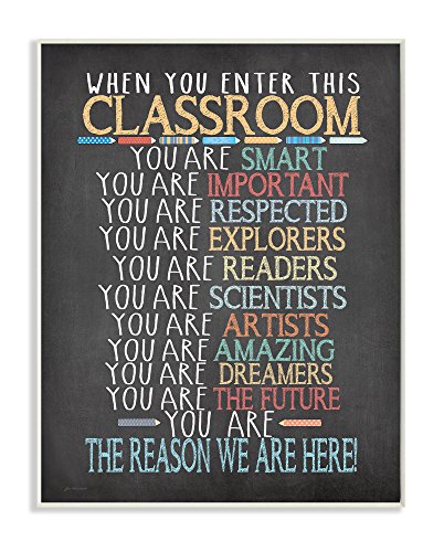Stupell Home Décor Classroom Rules Rainbow Chalk Wall Plaque Art, 10 x 0.5 x 15, Proudly Made in USA