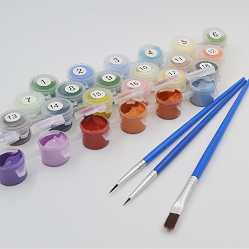 Package Includes: 1 pcs pre-printed textured thick canvas (without framed), 1 set acrylic paints, 1 set brushes(include 3pcs).