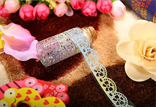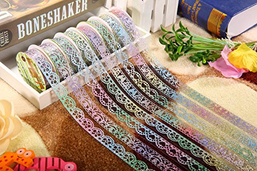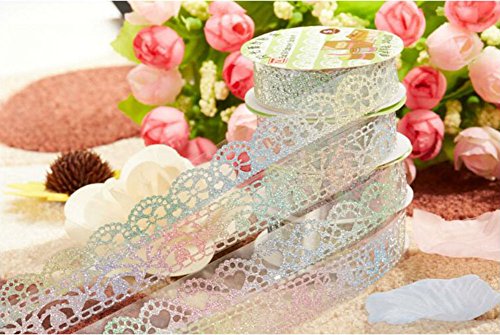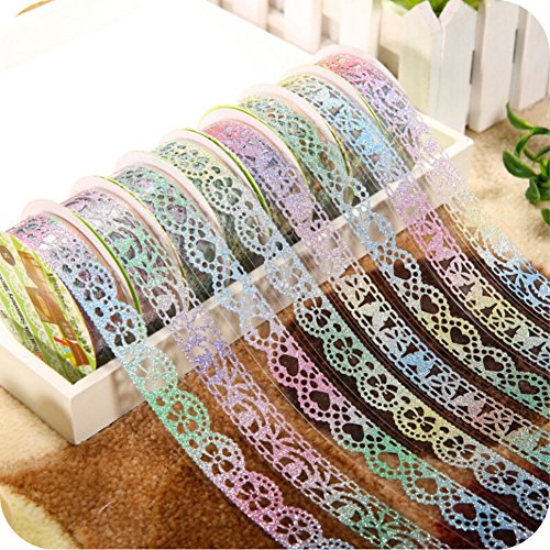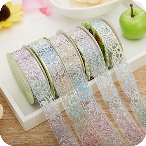 AKOAK 6 Rolls 1.8cm Bud Silk Stationery Stickers Glittery Hollow Out Lace Tape Colorful Decoration Masking Tape DIY Sticker Scrapbooking Tools