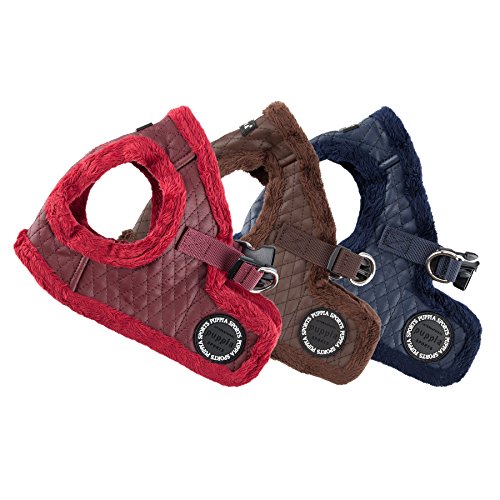 Studio : Puppia Int'l Inc. Publisher : Puppia Int'l Inc. Binding : Misc. Product Description The Farren Vest Harness B is a step-in harness, with a backside hook and loop closure and quick release buckle. Though the chest size is not adjustable like the "over the head" A harnesses, some people have found this harness to be more comfortable and easier to put on the dog. This harness features an artificial leather and solid scheme and features a thick fleece inside for the winter months. Matching leashes available and sold separately. Available in Brown, Navy, Wine in sizes ranging from Small to X-Large. Please note that because these products were created with small breeds in mind, larger sizes (i.e. Large, Extra-Large, etc.) do not necessarily mean larger breeds. Please refer to image of the size chart. It is very important to measure your dog with a tape measure according to the size chart. As a general rule of thumb, if your dog falls in between sizes, it is usually better to go up a size. Weight figures are for estimates only. Always use actual measurements. Please note that when measuring your dog for clothing, it's very important to have an accurate measurement of your dog's neck and chest girth. IMPORTANT: Please note that when measuring your dog, the measurement for the neck must be taken at the BASE OF THE NECK and chest girth must be taken behind the front legs. Also it is important to take into account the size of the dog's head as well as neck girth and chest girth. Since some dogs have a much larger head than their neck, please be sure that the neck opening is large enough to slide over your dog's head. 0