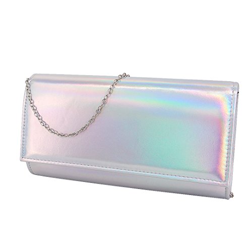 -. Brand : Naimo -. ClothingSize : one size -. Department : womens -. Feature : Please read the size carefully before order / Bag Dimensions: 11.25 in (L) X 2.2 in (W) X 6 in (H) / Magnetic snap closure / A Shiny beautiful bag for fancy events,evening out,birthday party and weddings / Package included: 1* bag with detachable chain -. ProductGroup : Shoes -. ProductTypeName : HANDBAG -. Size : One Size -. Title : Naimo Shiny Holographic Pu Evening Clutch Bag Envelop Bag