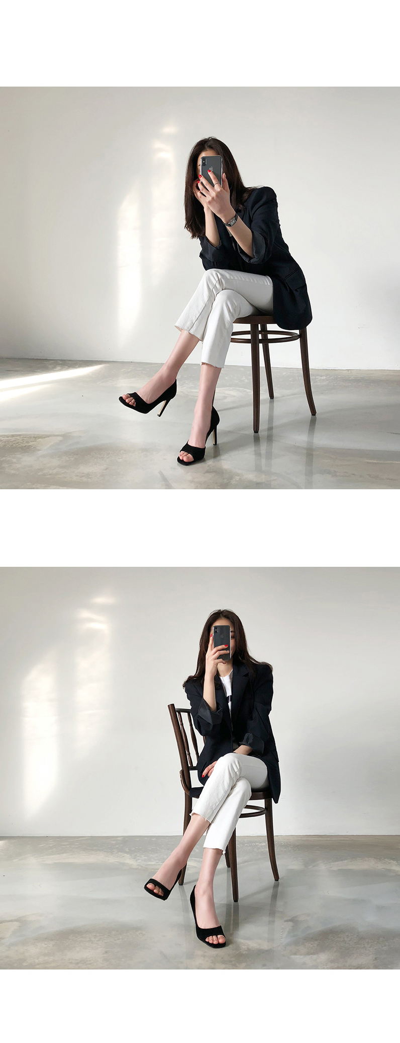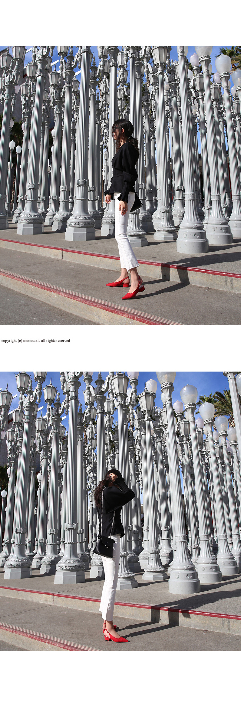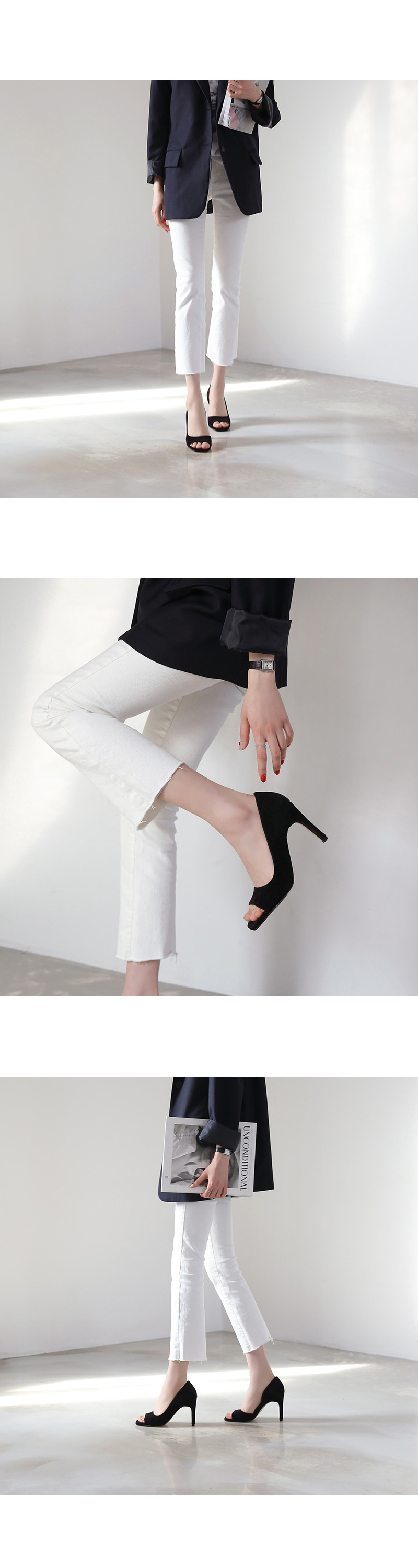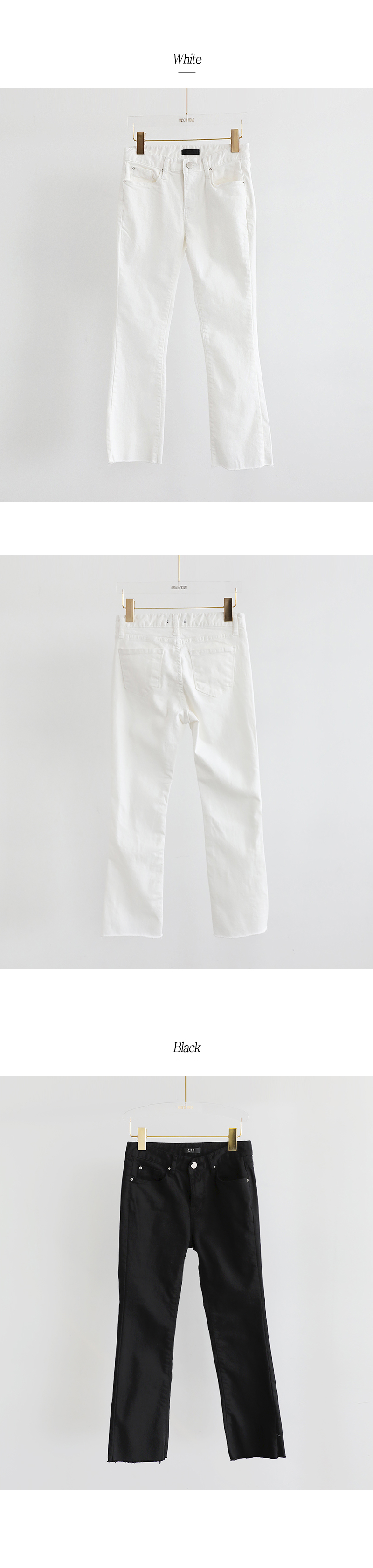 Boot cut daily pants. 텐션감이 좋은 부츠컷팬츠입니다. 너무 오버스럽지않은 세미부츠컷라인으로 힙과 허벅지는 타이트하게 핏되면서 종아리부터는 약간의 여유만 가지고 떨어지는 제품입니다. 특히 밑단은 마감하지않은 컷아웃디테일이 돋보이며 텐션감이 좋아 데일리로 자주 입혀질 제품입니다.