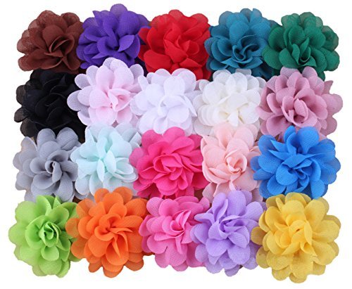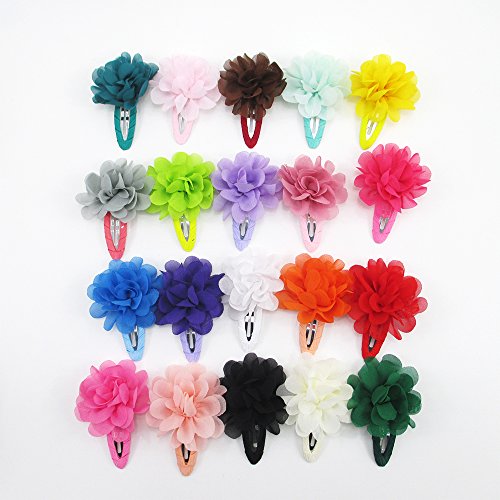 Flower size: 2";Made from Chiffon; Attached with Lined Single Pronged Clips. Clip size: about 4.6cm Set of 20 colors; Handmade wedding flower hair accessories and available for almost all occasions when is needed