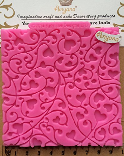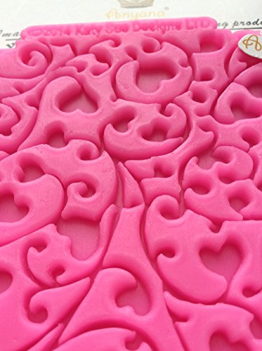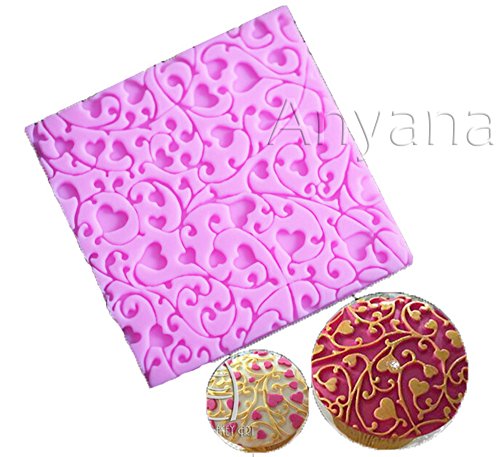 - √ Anyana Vintage patterns edible hearts vine French Empire lace ornamented in the refined Art Nouveau style of Swiss lace. Stunning silicone imprint Mould and sugar Gum Paste mat . Beautiful intricate fondant impression lace, and detailed drawings for fondant cake decoration, cupcake decor, clay crafting, scrapbook projects decorating etc.