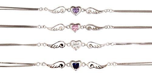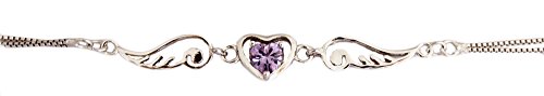 -. Title : Anklet: Silver Color Angel Wing Heart Anklet - Simulated Amethyst Glass Cubic Zirconia (9 Inches)