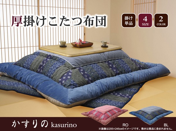 【商品名】和柄 こたつ厚掛け布団 こたつ布団 単品 『かすりの』 ブルー 205×315cm