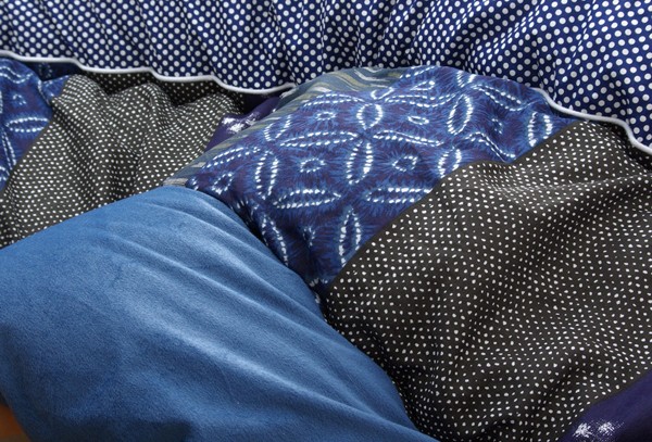 表地=(プリント部)綿100% (無地部)ポリエステル100%【ベロア】 裏地=ポリエステル100%【ピーチスキン】 中材=ポリエステル100% 3.4kg
