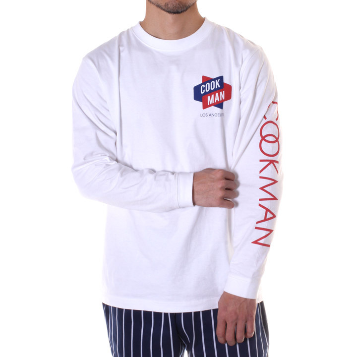 ホワイトに映える星条旗カラーリングのデザインプリントが配されたロンTです。