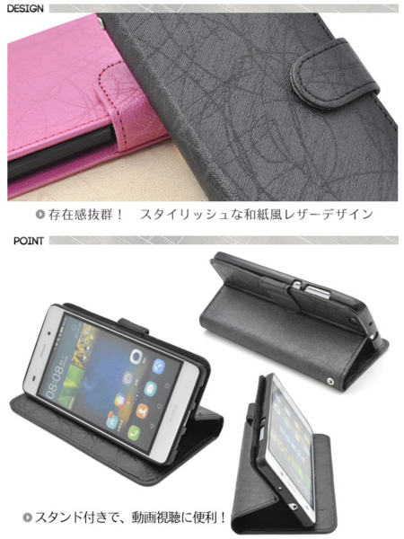 存在感抜群!スタイリッシュな和紙風レザーデザインのP8 lite用スタンドケースポーチ。