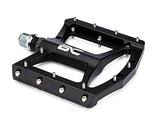 Take your cycling experience to a new level with the aluminium platform mountain bike pedals by BC Bicycle Company, dollar for dollar the best pedals on the market! CNC machined 6061 aluminium bodies reduce weight and add durability. 10 Replaceable steel traction pins per side bite in and stick your shoes to the pedal. 9/16 CNC machined Cr-Mo axles contribute to the durability and long lifespan of each pedal. Sealed bearings keep the elements out and contribute to the longevity and smooth rolling feel. The 110 X 108mm generously sized platform offers stability, comfort and grip while the low-profile design gives added ground clearance. At just 179g each, these pedals weigh less than many higher priced competing models.Feature
