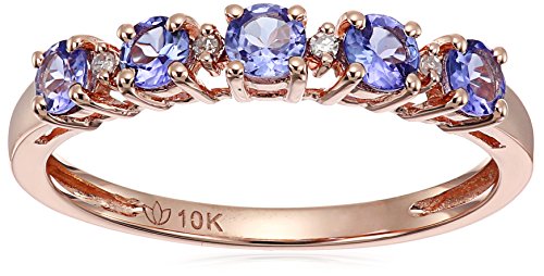 -. Title : 10k Rose Gold Tanzanite and Diamond Accented Stackable Ring