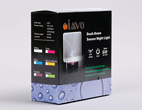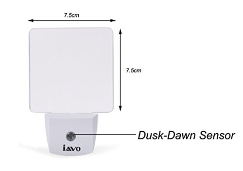 Iavo 2 Piece Auto on/off Plug in LED Night Light with Dusk to Dawn Sensor, Bright White Glow
