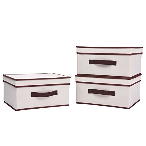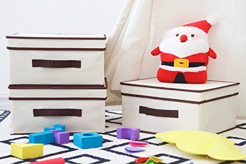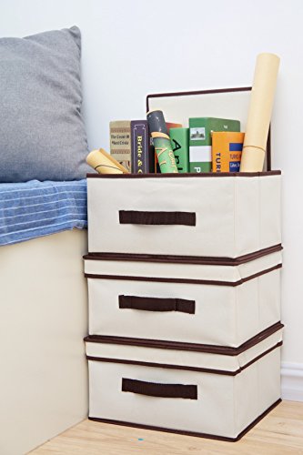 - STACKABLE USE: These really versatile canvas storage bins are stiff enough to stack on top of each other, because thickened cardboards make the wonderful storage organizers quite strong. It suits nicely for indoor storage: on the shelves, in the closets, under the high beds, at the corners... Absolutely perfect for students or families with children.