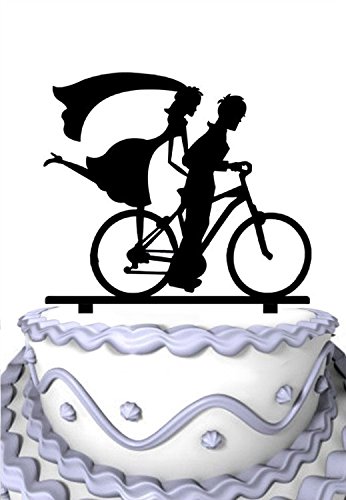 Meijiafei Bicycle Cake Topper the Groom Riding with The Bride Silhouette Toppers