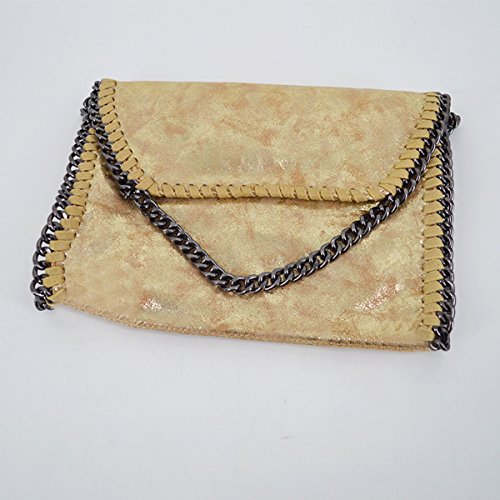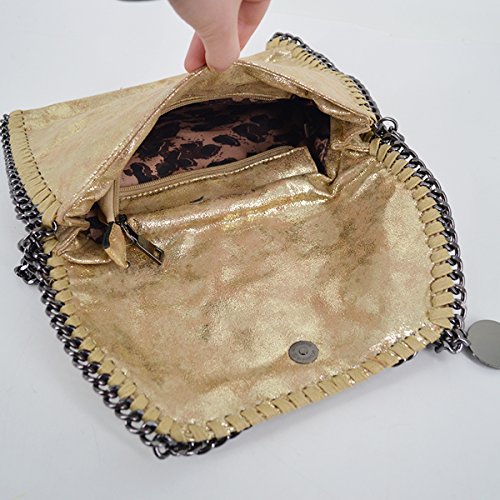 - Simple metal hollow out edge design,blackish metal chain strap,one little round paillette decor on the flao, simple and eye-catching.You can hold it in your hand as a clutch bag,or use it as a shoulder bag by putting it over the shoulder. Also Using it as a crossbody bag would add more sense of sweetie and feminine