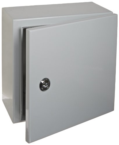 BUD Industries Series SNB Steel NEMA 4 Sheet Metal Box with Mounting Bracket, 9-53/64" Width x 9-53/64" Height x 5-29/32" Depth, Smooth Gray Finish