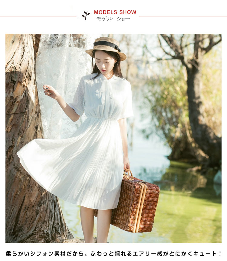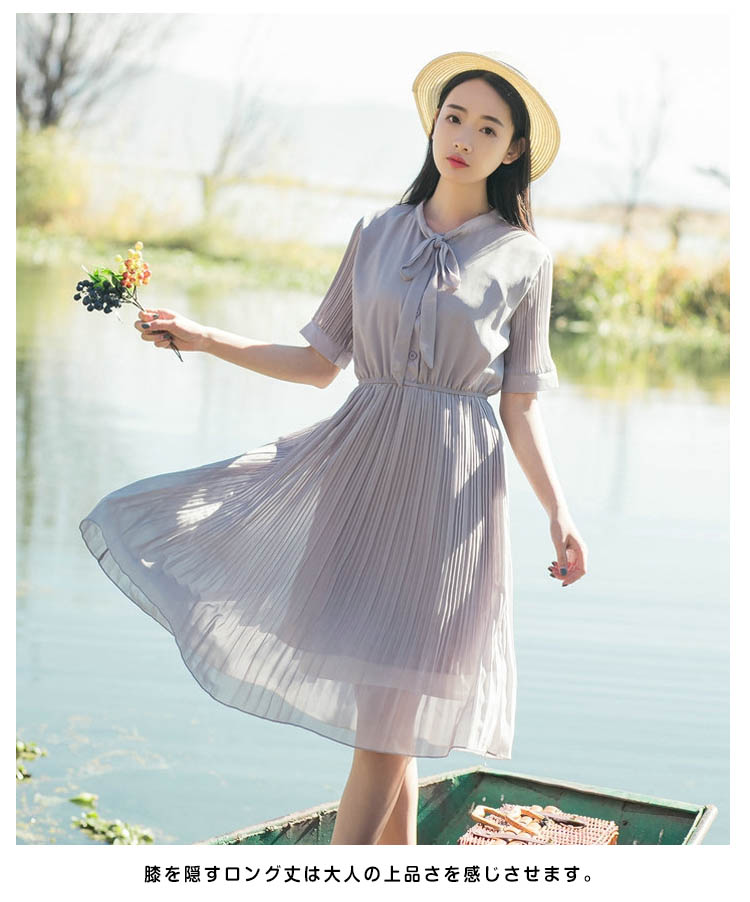 | ヴィンテージレトロでちょっぴりフェミニンなリボンタイが今季らしいデザイン。柔らかいシフォン素材だから、ふわっと揺れるエアリー感がとにかくキュート!ややハイウエストでお腹周りがスッキリ見え、脚長効果も抜群◎膝を隠すロング丈は大人の上品さを感じさせます。女度の上るシンプルでも華やぎがあるアイテムは注目の的! | |