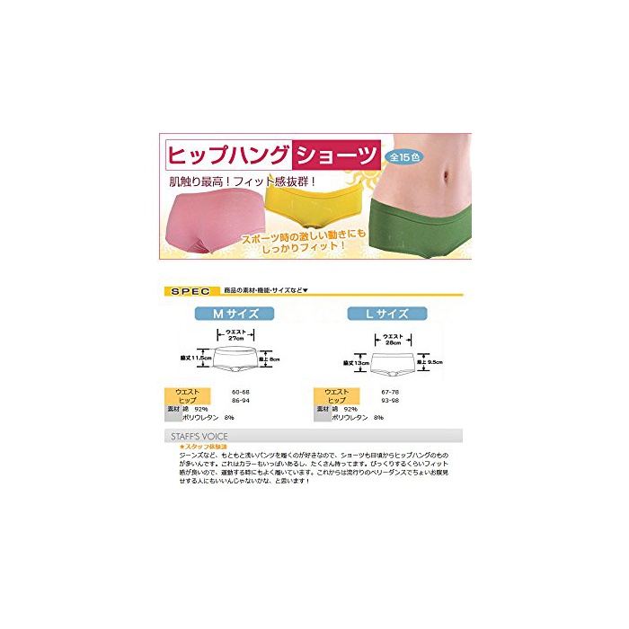 취급 사이즈【M】웨스트 60-68cm/힙 86-94cm/밑위 9cm 【L】웨스트 67-78cm/힙 93-98cm/밑위 10cm