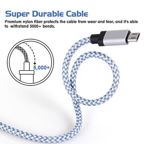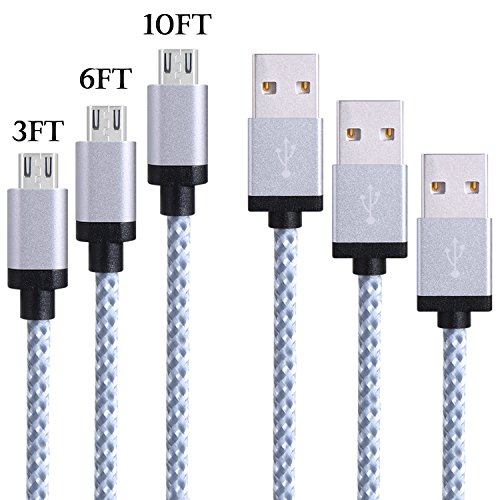 EverDigi 3FT 6FT 10FT Micro USB Charger Nylon Braided USB Cable with High Speed USB to Micro USB Charging Cord for Samsung, HTC, Motorola, Nokia, and More 3Pack(White)