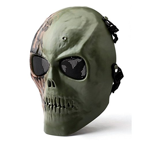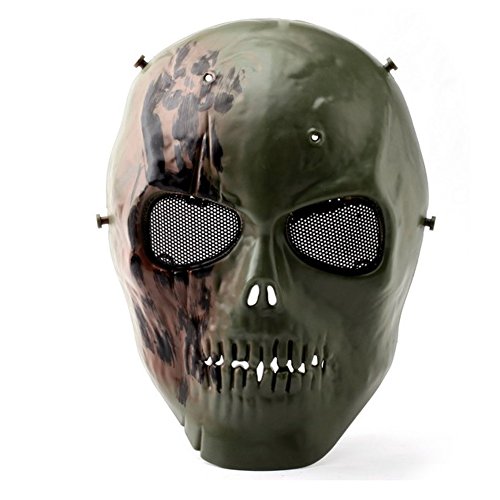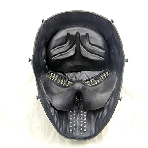 -. Feature : HIGHLY DETAILED Movie props quality scary skull mask to frighten your enemies & delight your friends / Resin material; COMPLETELY SAFE Ideal protective mask gear; Odorless & fully adjustable / INCREDIBLY COMFORTABLE Skull face mask keeps you comfortable and allows for easy breathing / SEE THE TERRAIN CLEARLY Mesh eye covers won't impact your aim / Package included: Mask *1 + Discount Card * 1