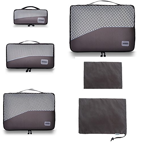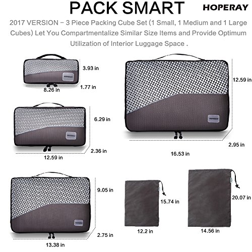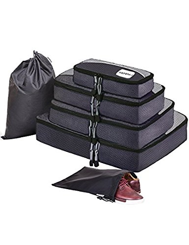 PACK SMART : 2017 VERSION - 6 Piece Weekender Plus Packing Cube Set (1 Slim Cube, 1 Weekender Cube, 1 Extended Getaway, 1 Essential Cube,1 Shoe bag and 1 Laundry bag) Let You Compartmentalize Similar Size Items and Provide Optimum Utilization of Interior Luggage Space . New Deeper Packing Cubes Design for 2017!