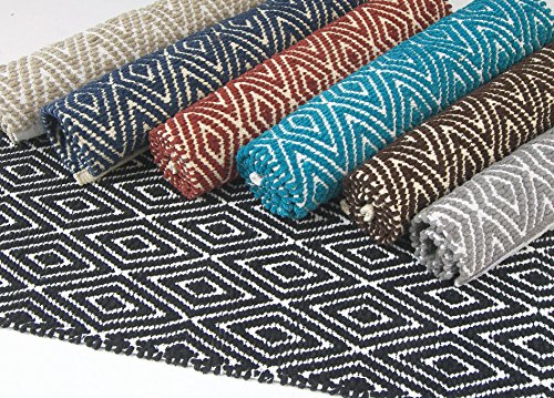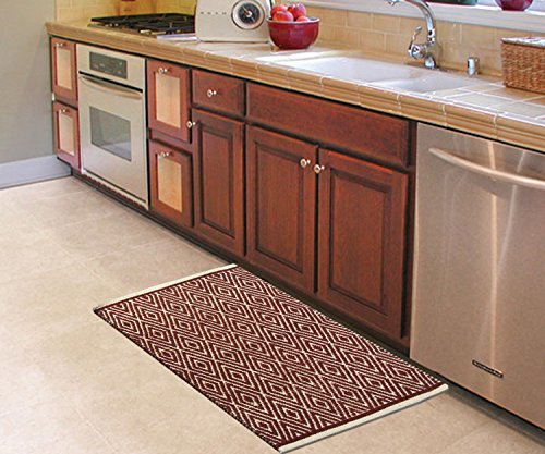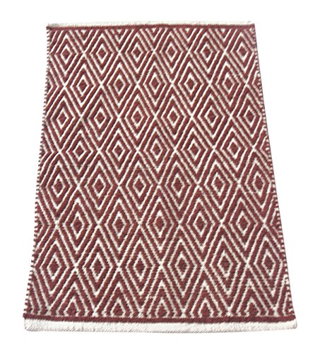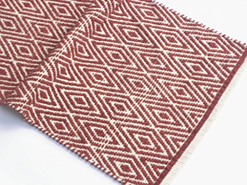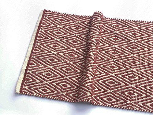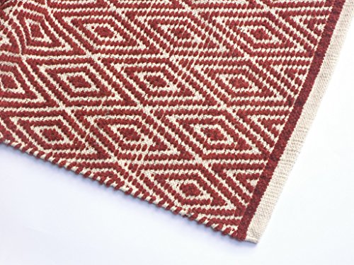 Chardin Home - 100% cotton Diamond Rug Fully reversible - Mat size 21''x34'', Machine washable, Brick Red & Ivory