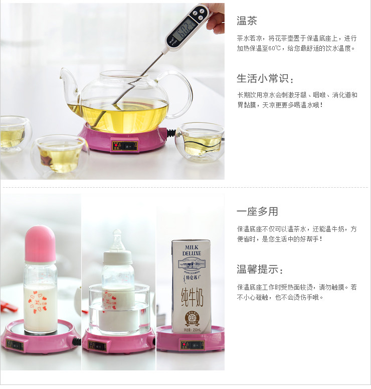 随着天气渐渐转凉,茶水冷却的速度也加快,微凉的茶水喝起来总觉得不是滋味。雅集保温底座凭借自己的小小身躯,温暖着壶中的水,直至60℃最舒适的饮水温度,给您始终如一的关怀。