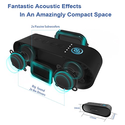 PORTABLE BLUETOOTH SPEAKER, 2X8W IPOP OUTDOOR WIRELESS SPEAKER 4.2 POWERFUL STEREO SOUND WITH AWESOME BASS AND BUILT-IN MIC , WORKS FOR IPHONE, IPAD, PHONES, LAPTOPS AND MORE (BLACK)