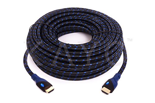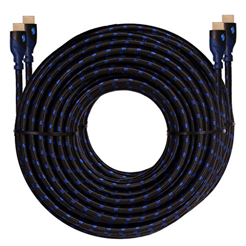 KAYO High Speed HDMI Cable 50FT Pack of 2 Cables -VERSION 1.4 with Ethernet, Supports 3D & Audio Return Channel, Gold Plated Connectors, FULL HD (Latest VERSION)- 50FT x2 with BLUE & BLACK Braiding/Sleeve.