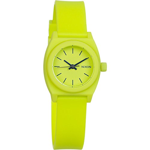 Studio : Nixon Publisher : Nixon Binding : Watch Product Description Don't let its title throw you off because Nixon's Small Time Teller packs as much heat as any other watch. Giving you a polyurethane wristband, this watch is super strong and strays away from the usual leather or polyurethane straps. Whenever you take its bright colors and cool Nixon logo into account, you'll have no trouble realizing that The Small Time Teller is just as large of a style hit as it is a time telling hit. PRODUCT FEATURES: 3 Hand Quartz 26mm, 100 meter/10 ATM Stainless steel core encased in custom injection molded polycarbonate 14mm polyurethane band with patented locking looper and polycarbonate buckle Movement: Miyota Japanese quartz 3 hand Case: 26mm, 100 meter/10 ATM custom stainless steel core encased in custom injection molded polycarbonate, fixed polycarbonate bezel, hardened mineral crystal, triple gasket molded polycarbonate crown, screw down stainless steel caseback encased in custom injection molded polycarbonate, and stainless steel spring pin lugs Band: 14mm custom injection molded polyurethane band with patented locking looper and polycarbonate buckle A425 , nixon mod watches , nixon mods , nixon mod wristwatches , nixon mod watchs , mods nixon , nixon watches , nixon watchs , nixon polyurethane watches , nixon polyurethane watchs , nixon clocks , nixon wrist watches , nixon wristwatches , nixon wrist watchs , nixon wristwatchs , nixon digital watches , nixon digital watchs , nixon automatic watches , nixon automatic watchs , nixon led watches , nixon led watchs , wrist watches , automatic watches , sports watches , digital sports watch , ironman watches , running watches , led watches , watches , nixon poly watchs , nixon poly watches , nixon pu watches , nixon pu watchs , nixon water resistant watches , nixon water resistant watchs 0