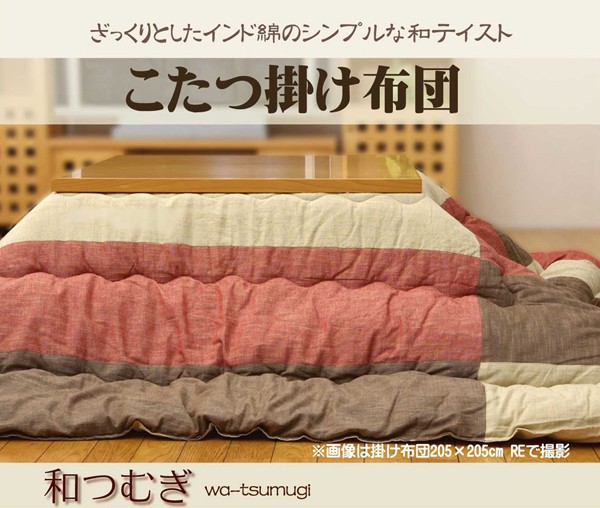 【商品名】インド綿 こたつ厚掛け布団単品 『和つむぎ』 レッド(赤) 205×205cm