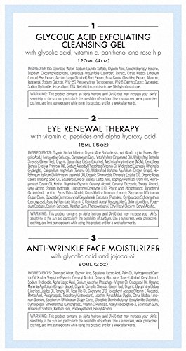 BEAUTIFUL GIFT BOX FOR HER (OR HIM): No Wrapping Paper required for this Gift! Perfect for Rejuvenating Skin. Glycolic Acid Exfoliating Cleanser, Anti-Wrinkle Face Moisturizer with Glycolic Acid and Jojoba Oil, and Eye Renewal Therapy with Peptides and Alpha Hydroxy Acids