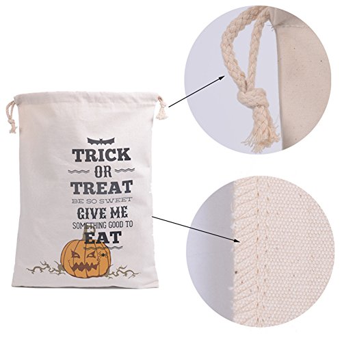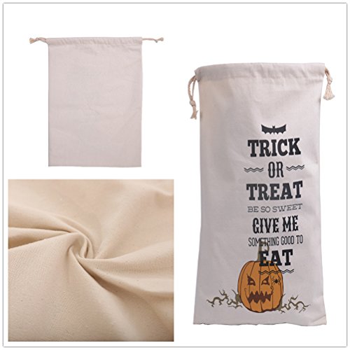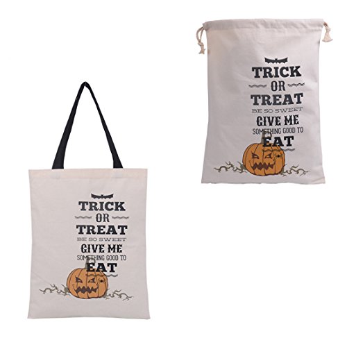 Halloween Eco Cotton Canvas Candy Gift Reusable Daily  Tote & Drawstring Bag Pack of 2 (Pumpkin)
