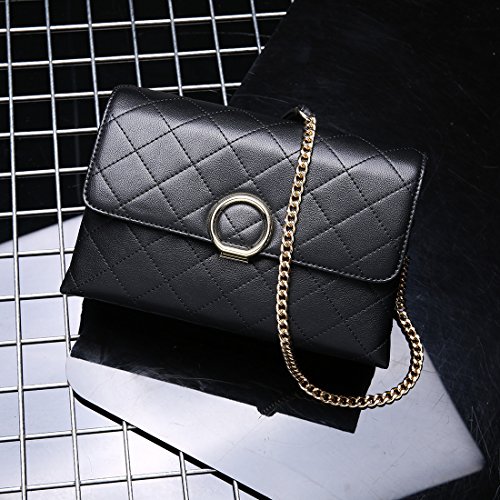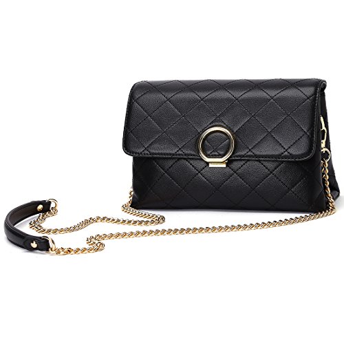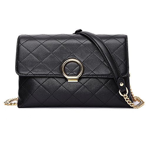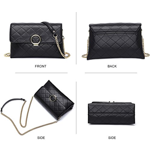 Womens Black Genuine Leather Crossbody Shoulder Bag Elegant Ladies Quilted Boxy Purse for Mother’s Day