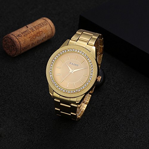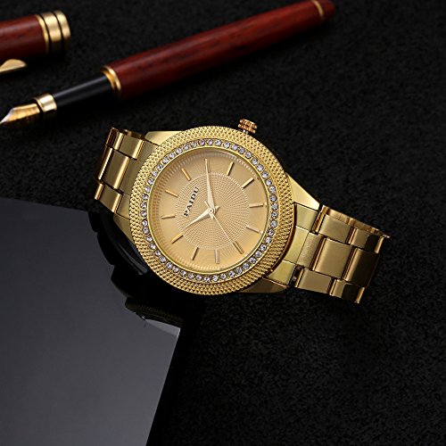 -. Title : Wdnba Men's Gold Watch Diamond Dial Fashion Gold Steel Analog Quartz Watches