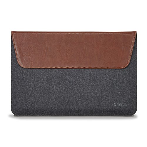 Maroo Microsoft Surface 3 Woodland Sleeve - Stylish Sleeve to Keep Surface 3 Snug and Comfortable, Stylus Holder, Brown Synthetic Leather and Gray Woolen Felt Exterior, Non-Scratch Microfibre Interior