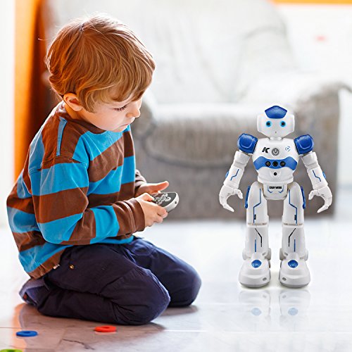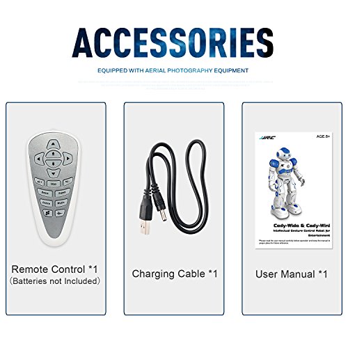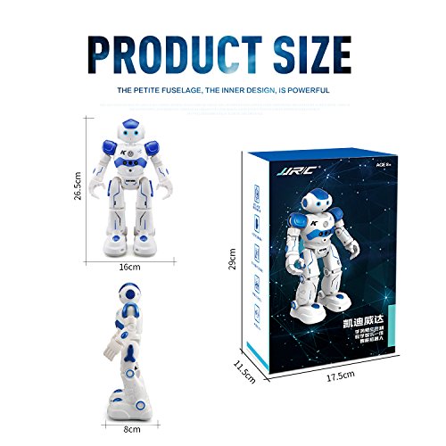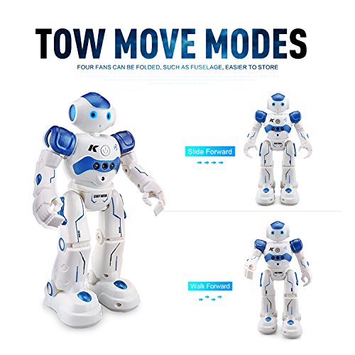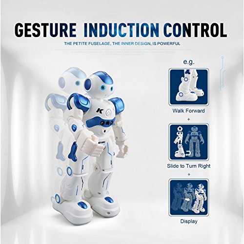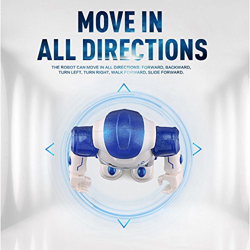 Features: The robot can sing and dance to entertain you. The robot can beprogrammed to carry out movements as you create. Gesture control: using simple gestures, the robot can react to your gestures with basic movements, along with sound effects. Patrol and obstacle avoidance: once detecting obstacle in the way, it will deliver message as reminders and then move backward and turn left or right on occasions to avoid obstacles. The electronic toy has one key to perform automatically including walk, play music. With the rotating wheel at the bottom, it will avoid obstacle without tripped. Best gift for your or friend's kids. A good companion for them. Specifications: Brand name: JOYBAND: R2 CADY WIDA RC robot Color: Blue / Pink optional Function: Slide Forward/Backward, Walk Forward/Backward, Turn Left/Turn Right, Gesture Sensor, Dance and Sing, Patrol and Obstacle Avoidance, Intelligent Programming, Auto Display, Mechanical Language, Volume Product size: About 26.5 * 16 * 9cm Body battery: 3.7V 600mAh lithium battery (included) Charging time: About 120 minutes Working time: About 60 minutes Remote controller battery: 2 * AA battery (not included) Age level: Above 3 years old Product weight: About 348gFeature
