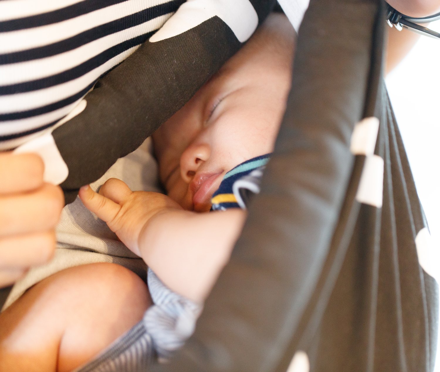 The cradle holds a posture that draws the same C curve as the mother's belly, and it is convenient for sleeping as the baby can relax.