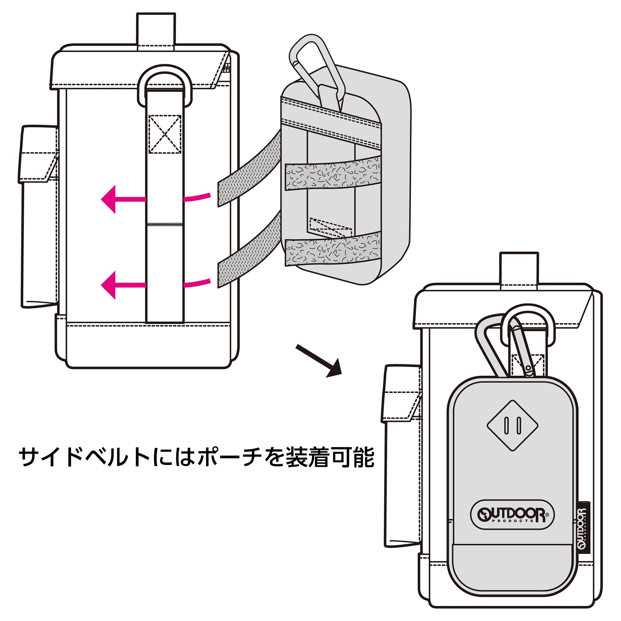 On the side belt, you can wear a pouch with hook and loop fastener on the back.