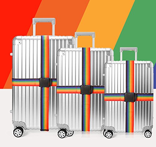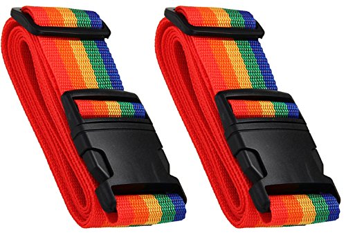 Specifications: * Material: Polyester, plastic buckle * Color:Rainbow color * Size:Lateral length: 200cm/78.95in * Longitudinal length 230cm/89.7in * Bandwidth 5cm/1.95in Feature: * Universal luggage strap for luggage packing during trip. * Made of Polyester and plastic material, durable and reusable. * Buckle closure for size adjustment to ensures security. * Bright color belt can help you to identify your suitcase easily. * Great for protecting your luggage from accidentally popping. Package include 2 Pack NKTM Luggage Straps 0