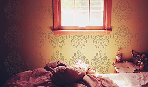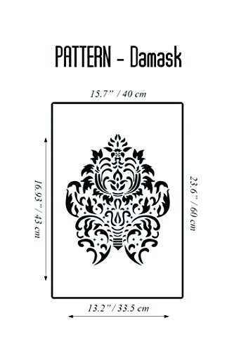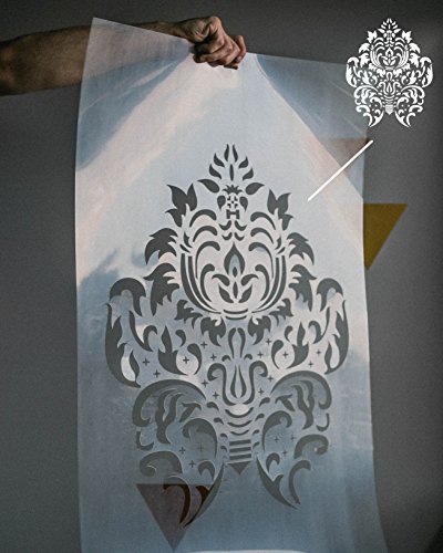 Flower Of Art large Stencil kit 15 inch x 23 inch Large DAMASK style stencil Reusable Stencilling kit with FREE Gloves and Stencilling Sponge