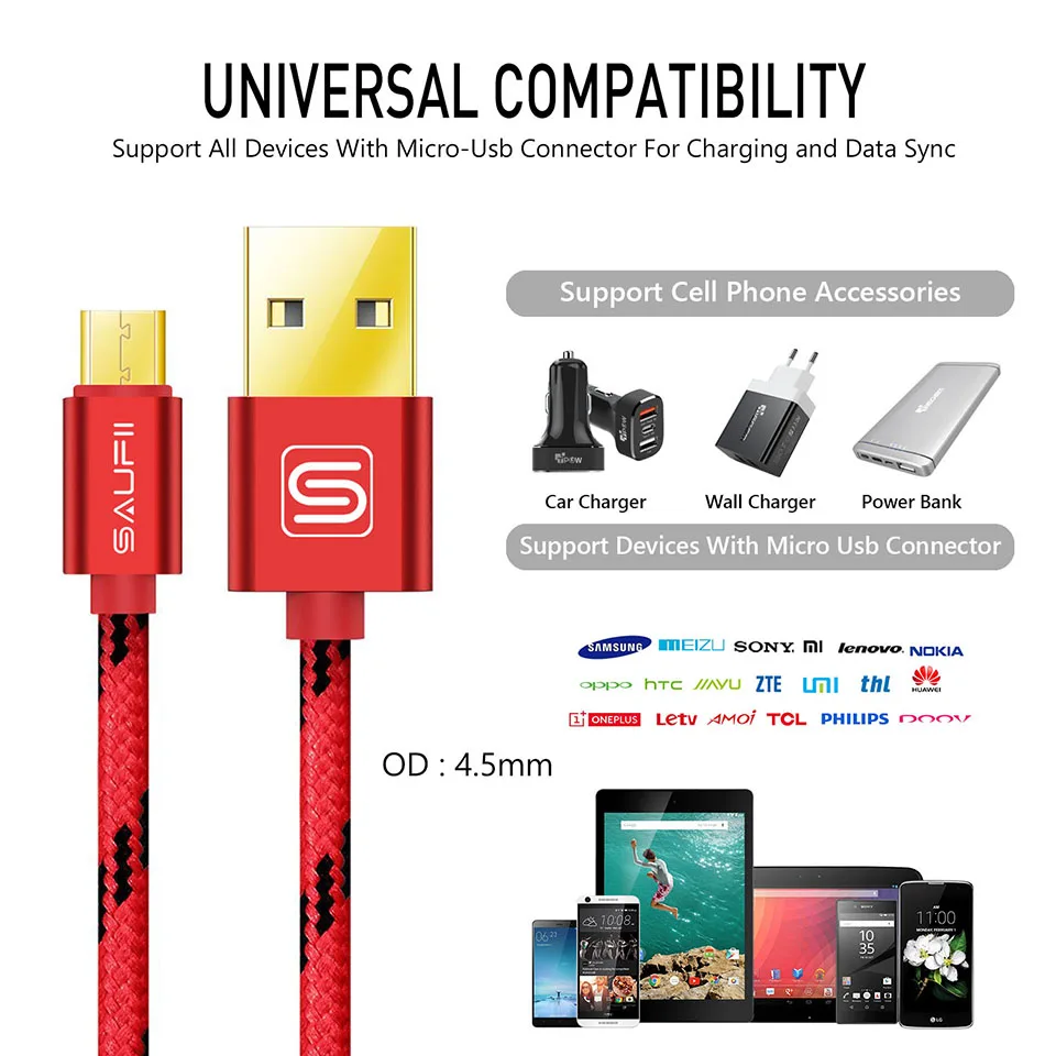 Model:Metal Nylon Braid Micro USB Cable for Android