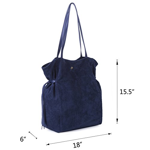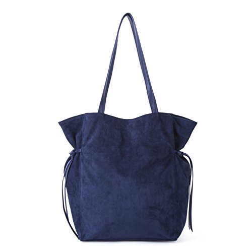 -. Brand : The Lovely Tote Co. -. ClothingSize : One -. Color : Navy -. Department : womens -. Feature : Wipe clean only / An Amazon brand / Slouchy suedette tote bag featuring double faux-leather straps and cinched side ties / 18" L x 6" W x 15.5" H / Magnetic snap closure, interior zip pocket -. Model : AM-080-SU-N -. ProductGroup : Apparel -. ProductTypeName : HANDBAG -. Size : One Size -. Title : The Lovely Tote Co. Women's Strap Suede Bag Side Ties Top Handle Tote Navy