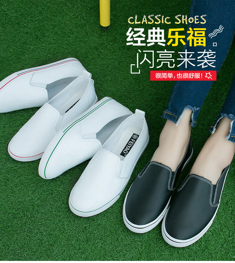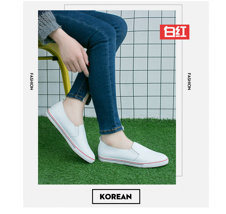 春季白鞋白色帆布鞋女学生韩版休闲一脚蹬懒人平跟板鞋