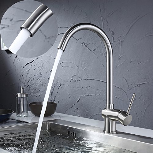 Sontiy Kitchen Faucet Lead Free Solid Brass Single Handle Kitchen Sink Faucet Mixer 360 Degree Swivel Good Valued Modern Copper Forging Hot & Cold Mixer Faucet Brushed Nickel